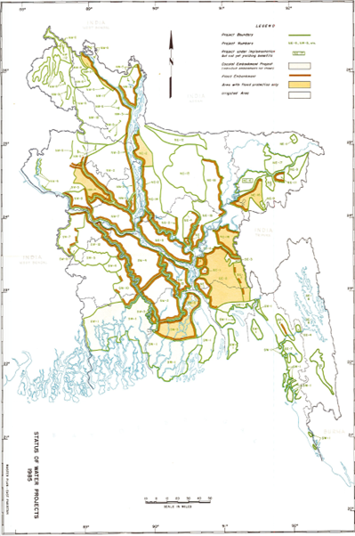 চিত্র-১.৬: মাস্টার প্ল্যান প্রস্তাবিত ১৯৮৫ সাল নাগাদ বাংলাদেশের পানির উন্নয়ন চিত্র